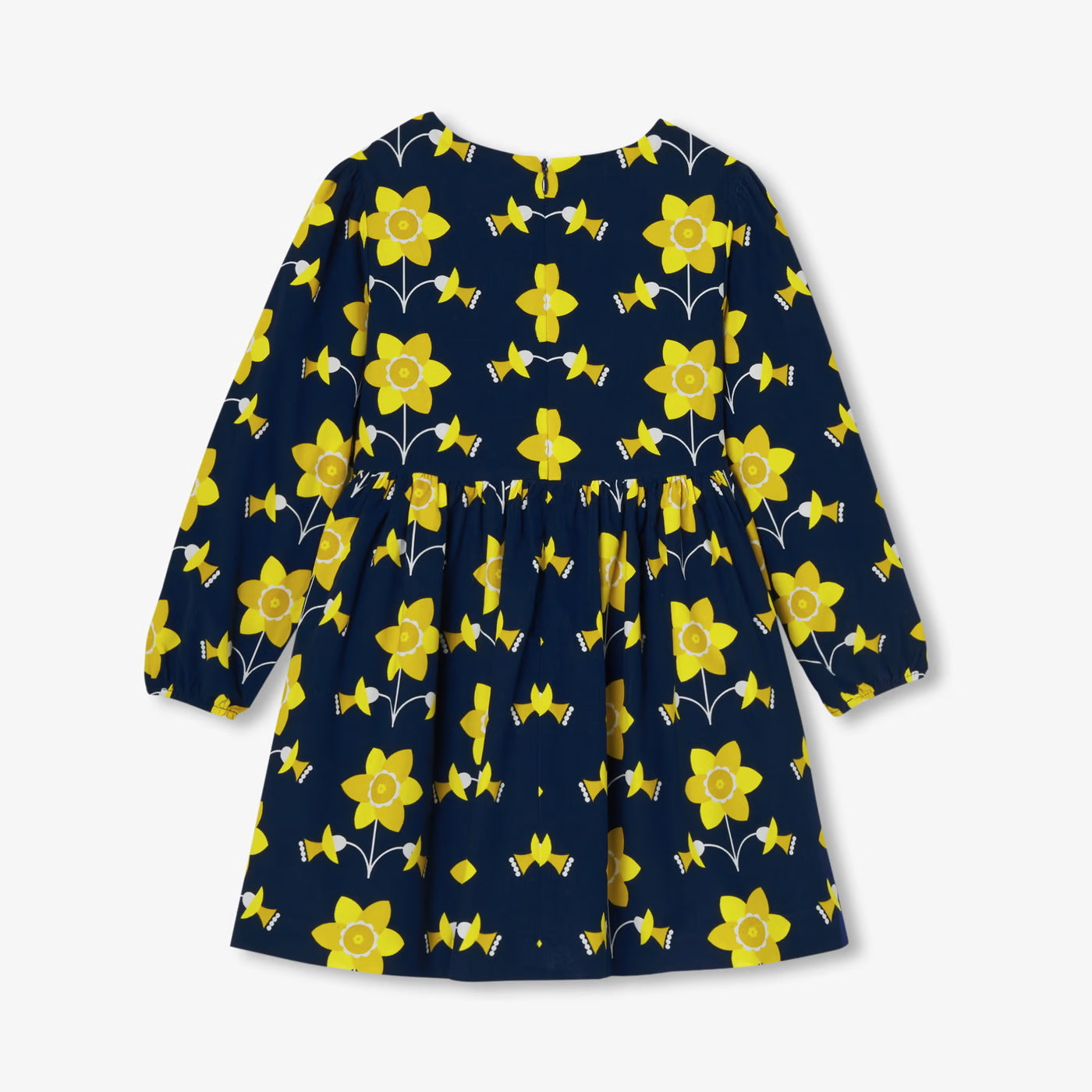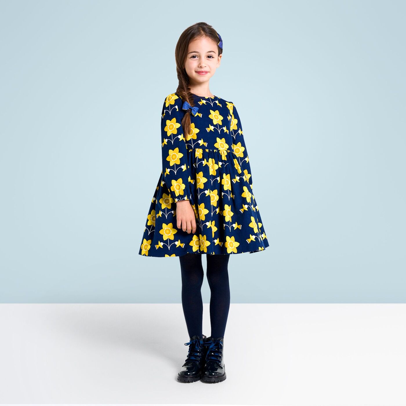 This girl dress in milleraie velvet captures all the elegance and savoir-faire of Jacadi. Featuring an exclusive pattern of brightly coloured daffodils, it is enhanced by a gathered waist. Lined and easy to slip on, match it with colourful tights and an British coat for a preppy-chic, urban silhouette.