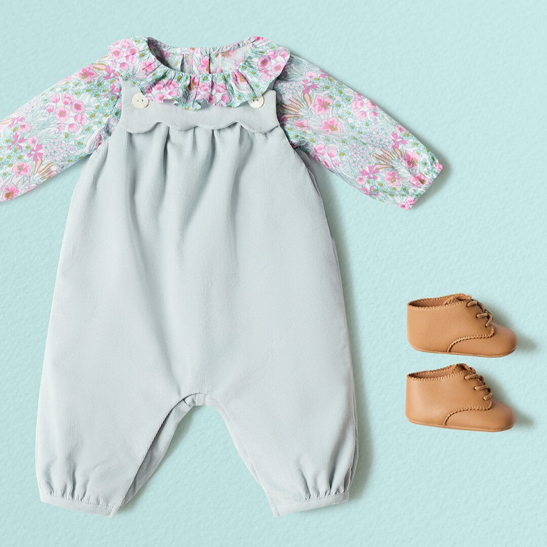- Organic cotton velvet baby girl overalls