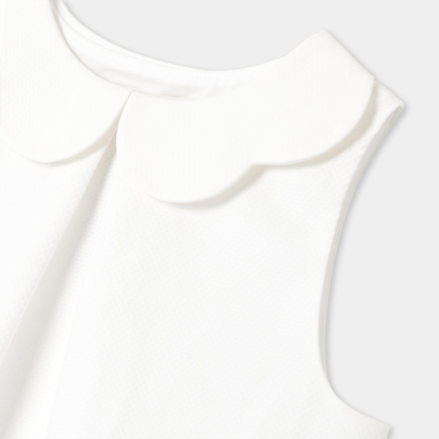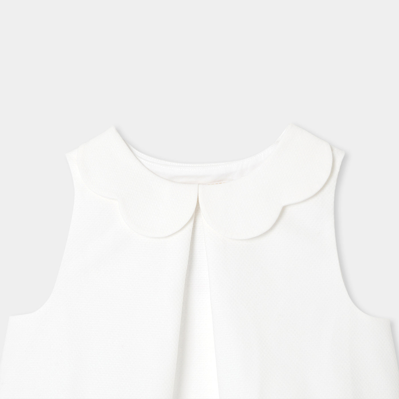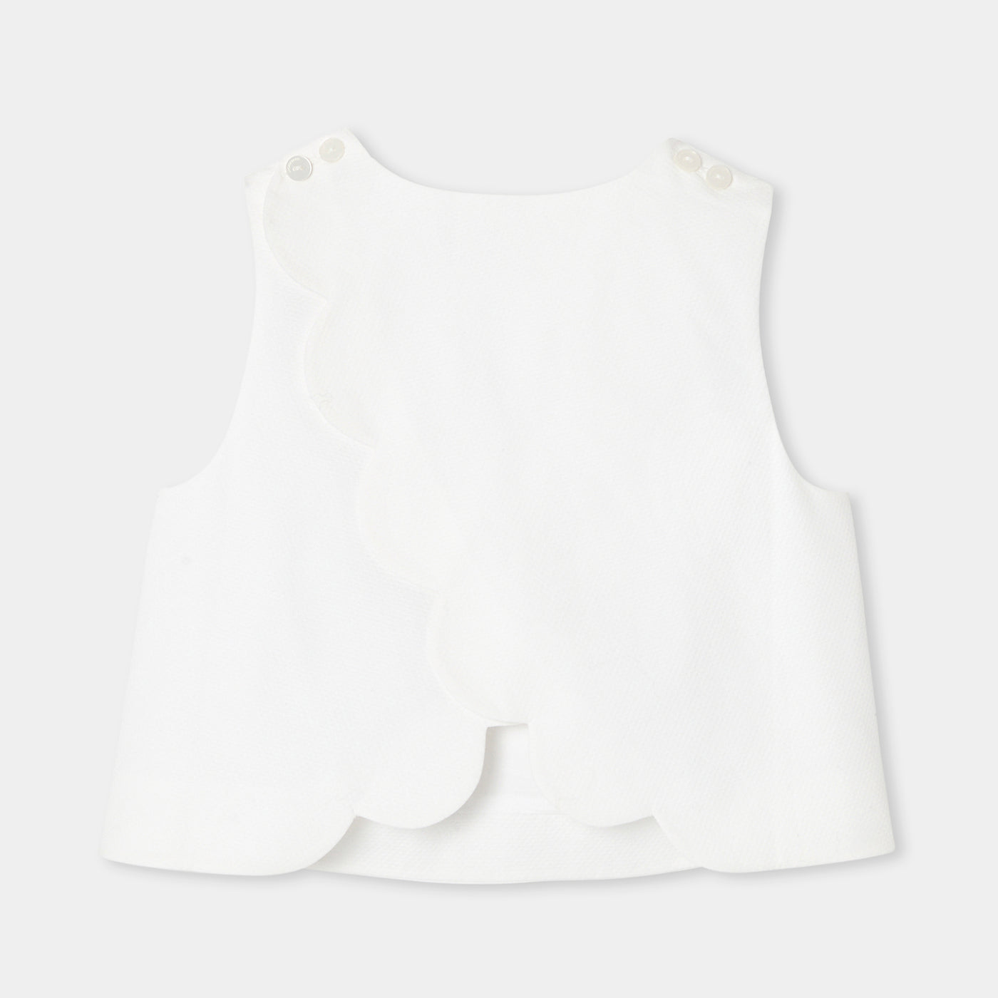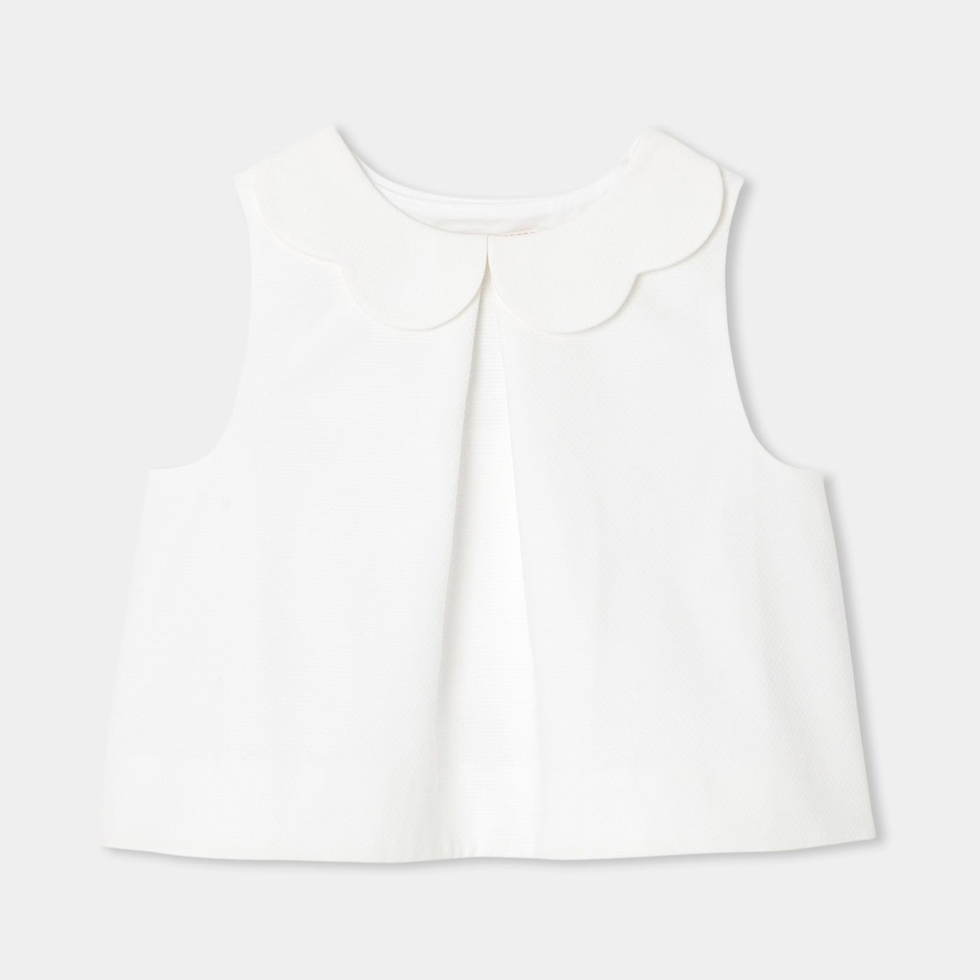 Rediscover French chic and Jacadi elegance in this sleeveless top for girls. Adorned with a scalloped collar, it reveals a delightful scalloped cross-back for an ever more contemporary silhouette. Wear it with a satin skirt on D-day, and you won't be able to resist this original model in honeycomb piqué, which your daughter will be able to wear all summer long with her favorite skirts and shorts.