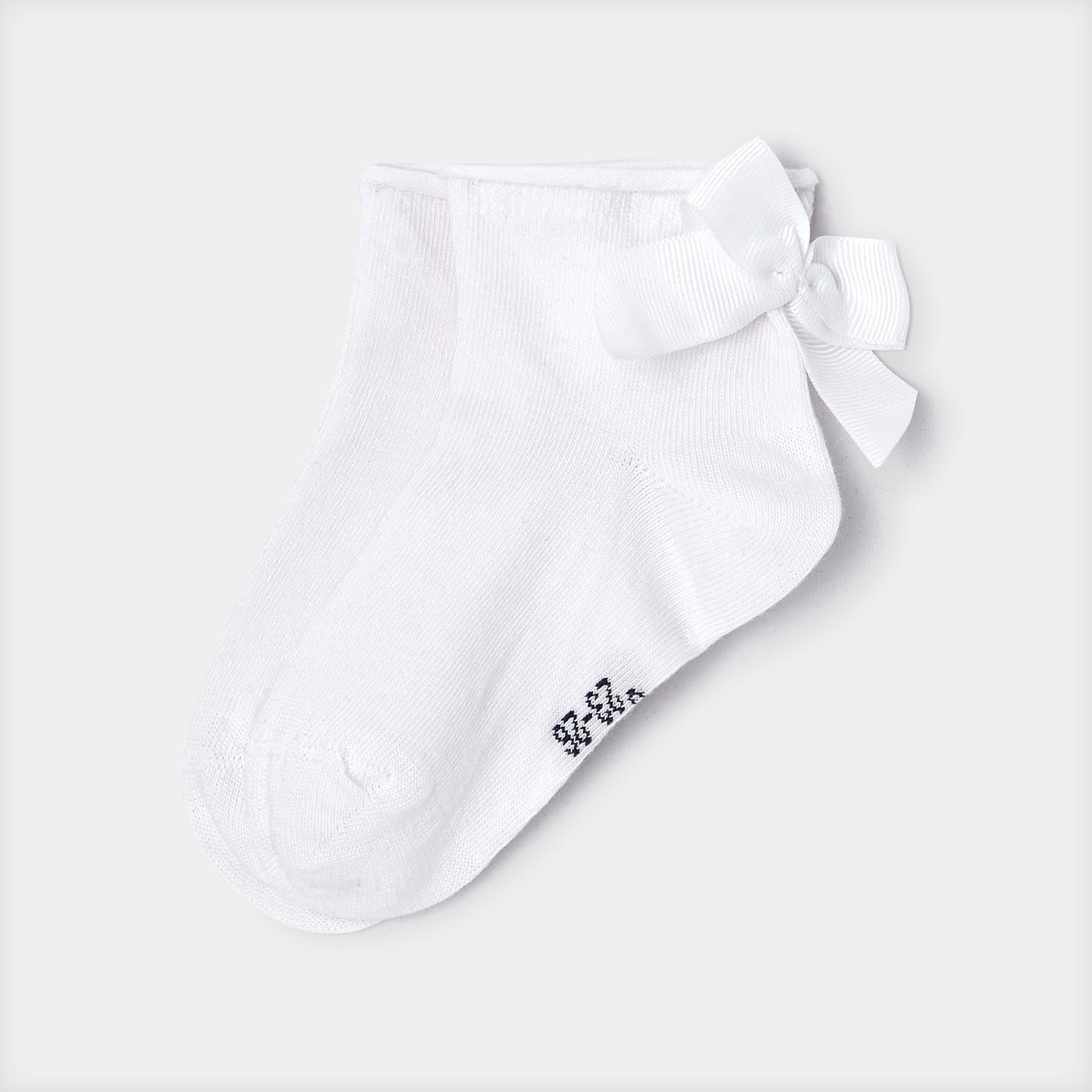 Lovely bow socks to wear with Mary Janes or tennis shoes for a fresh, modern look this spring. Set with a grosgrain bow, they are collectible in all colours.