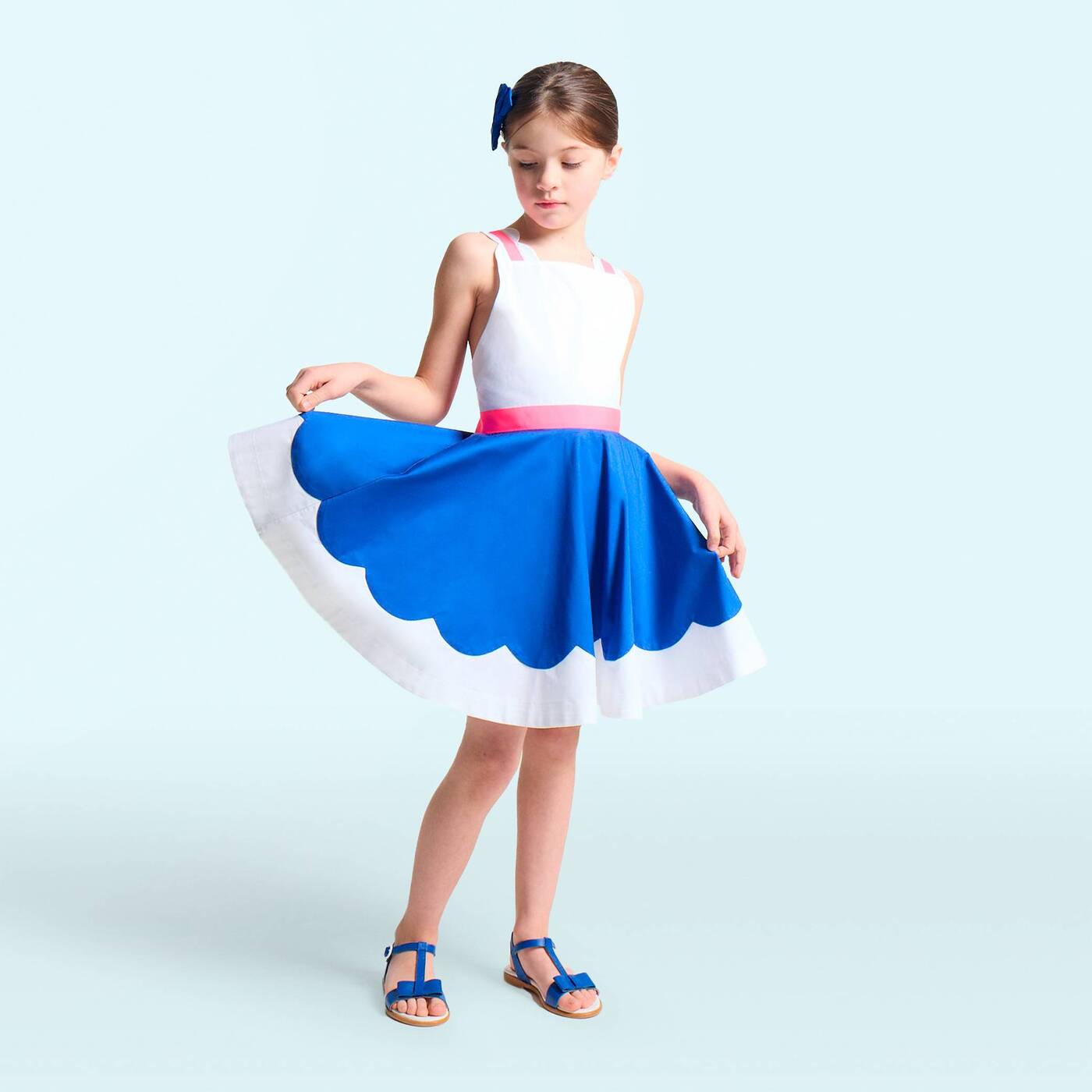 With its impeccable attention to detail and impeccable finishing touches, this elegantly geometric girl dress promises to be the perfect summer dress. In two-tone satin, inlaid scallops at the hem and cross-back straps edged with scallops sublimate this refined piece marked at the waist with a grosgrain ribbon. Pair it with sandals and a cardigan for the big day.