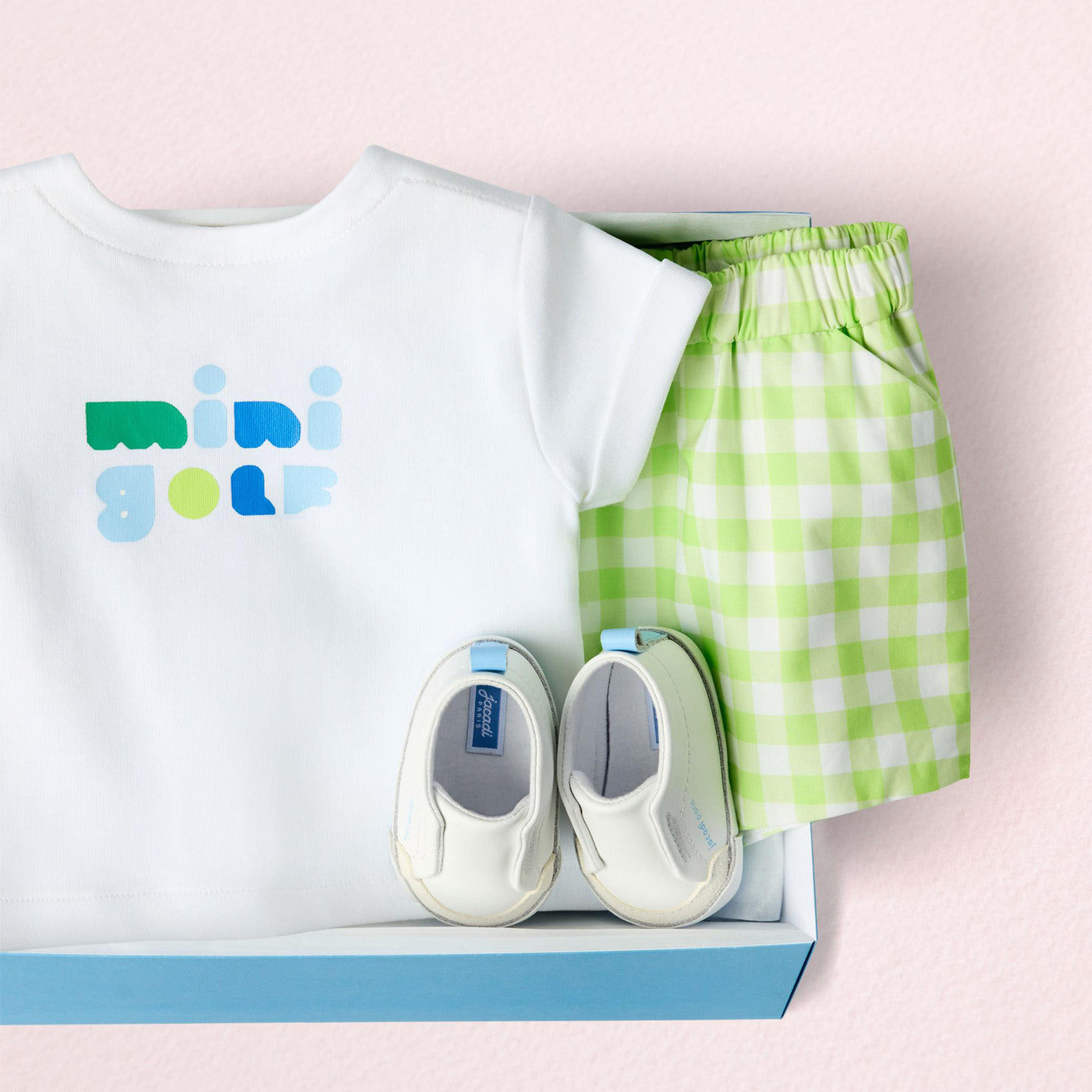 This baby boy set is the perfect duo to wear all summer long. Combining styles with a casual t-shirt and gingham shorts for a retro touch, this easy-to-put-on everyday set makes a great gift for your first vacation.