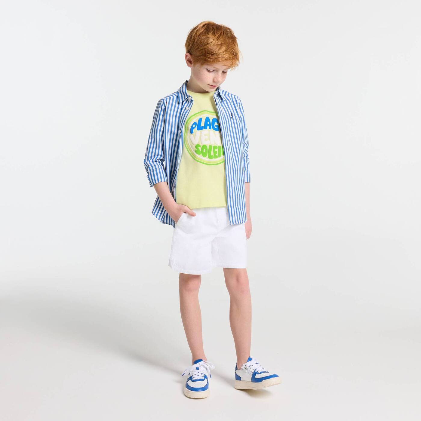 In paper-touch cotton twill, with a straight cut and elasticated waistband, these white boy's Bermuda shorts are perfect for summer. Easy to slip on with a t-shirt or polo shirt, these summer wardrobe essentials can be packed away for vacations.
