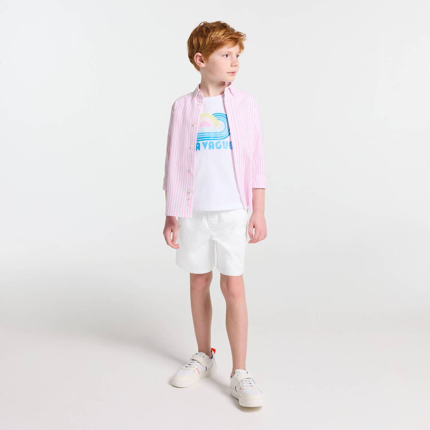 In paper-touch cotton twill, with a straight cut and elasticated waistband, these white boy's Bermuda shorts are perfect for summer. Easy to slip on with a t-shirt or polo shirt, these summer wardrobe essentials can be packed away for vacations.
