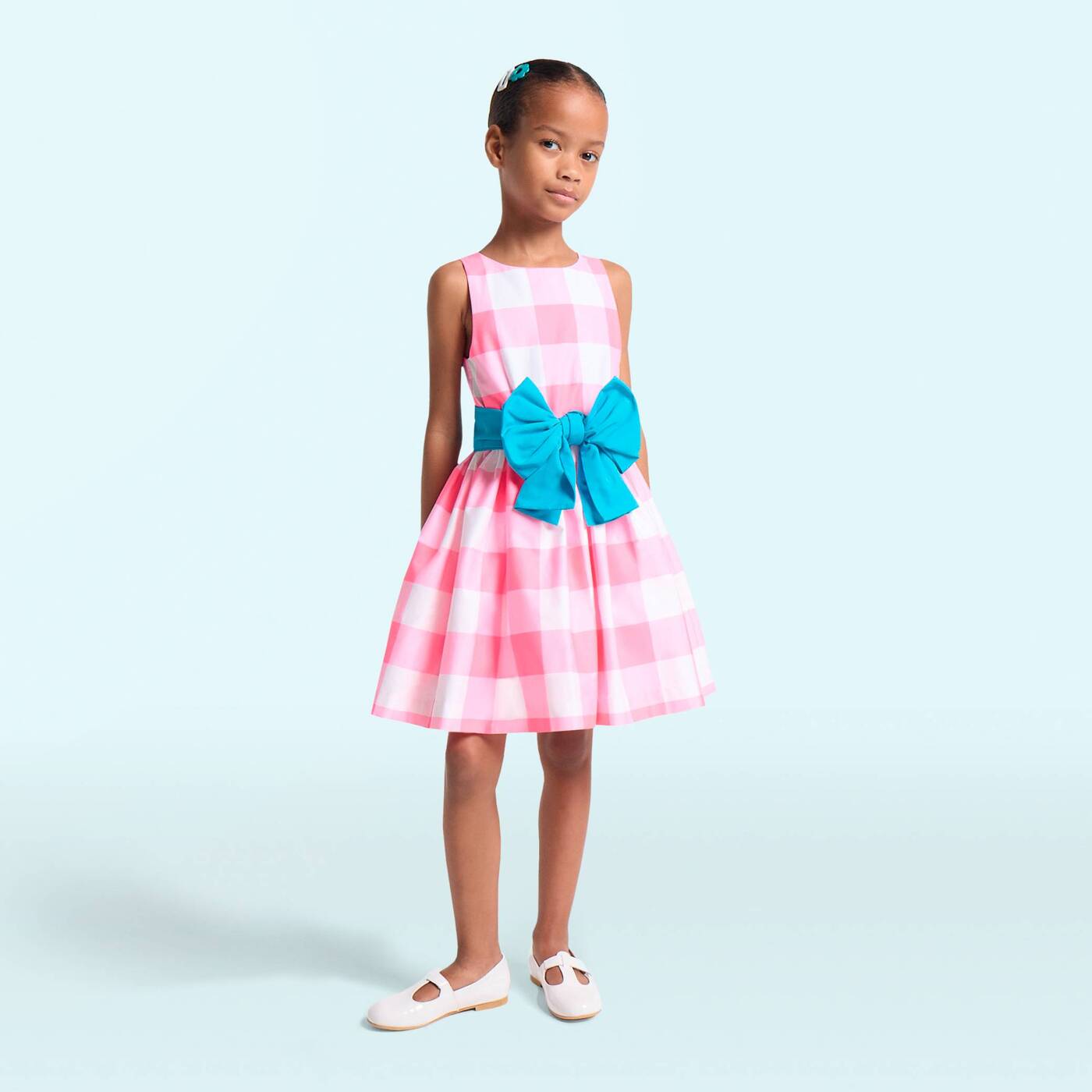 Ceremony or garden party, this breathtaking dress will answer every invitation. Made in gingham-printed satin with a halterneck for a contemporary silhouette, the designers played the card of subtle volume by adding a cotton and tulle lining. Complete with a taffeta belt to tie at the waist, match this retro-chic piece with a hat and sandals to finalise the outfit.